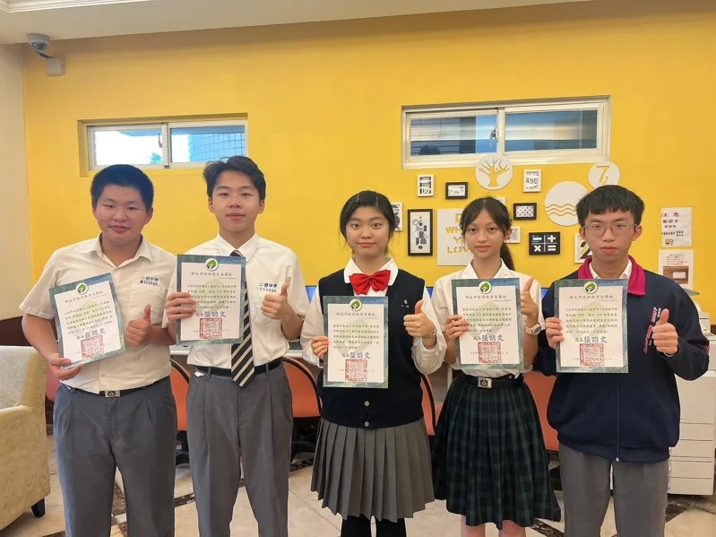 二信高中張粲禾地球科學科第二名、李晉德生物科第五名、曾竹慧資訊科第五名、謝秉學化學科第六名、邱健銘數學科第七名,這5人取得晉級全國決賽資格。