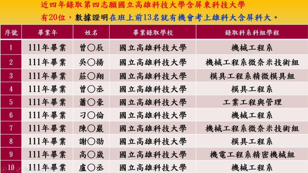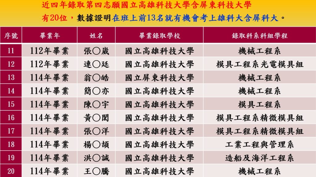 111年~114年錄取前五志願名單