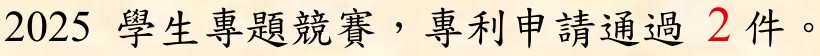 2025 學生專題競賽,專利申請通過 2 件。 (附件如圖)